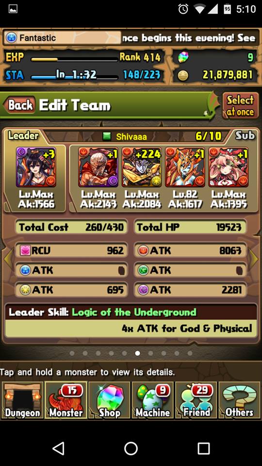I tried the DIZA team with a shiva dragon friend, Urd, Leilian, and a Rodin. It had trouble bursting through siren floor, just like A. Shiva.I only hit two combos, but still. If you can bring 2 5 turn orb changers, it might be better then bringing high atk gods.