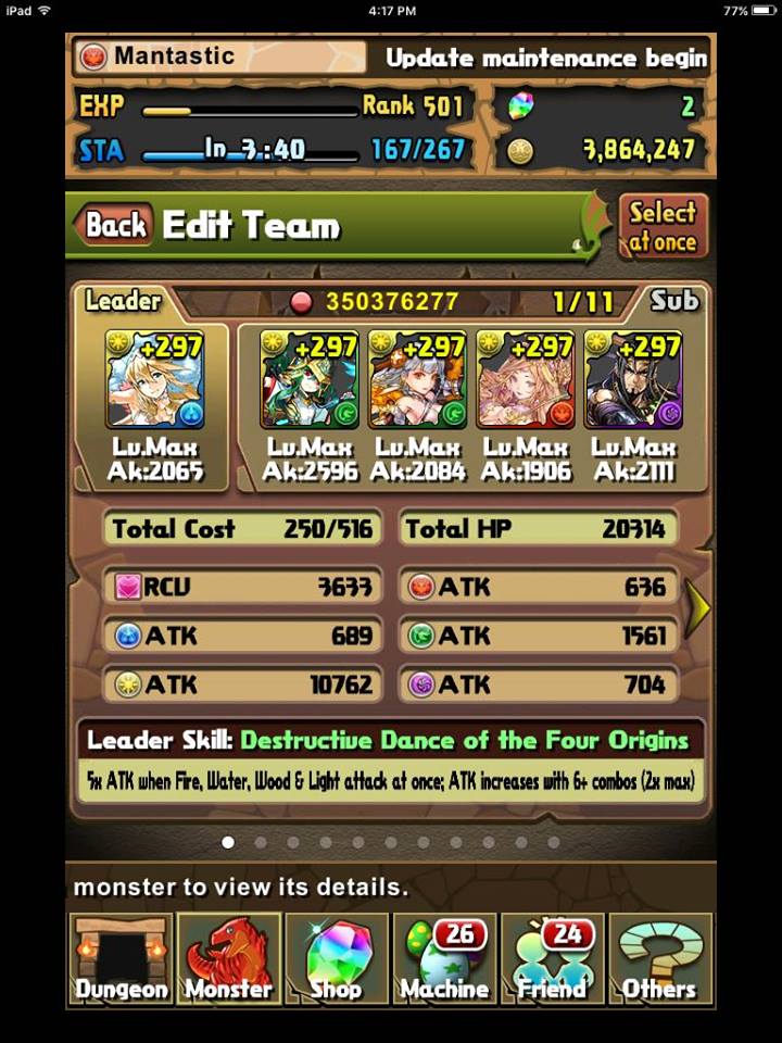 orbs to proc my leader skill. A lack of time extends and access to board refreshes also places constraints on rainbow teams. However, we should revisit how we are scored for each ranking dungeon.