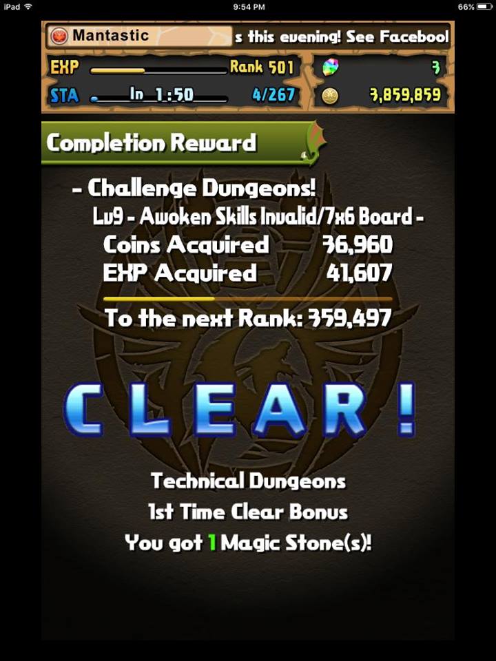This had to be one of the most frustrating challenge 9‘s of late due to the no awoken skills restriction. I guess as compensation, we get to play on a 7×6 board, but without the lovely time extends, it is difficult to take full advantage. Thus I was left with a bit of a conundrum as how to safely approach and clear this dungeon. My usual Sakuya