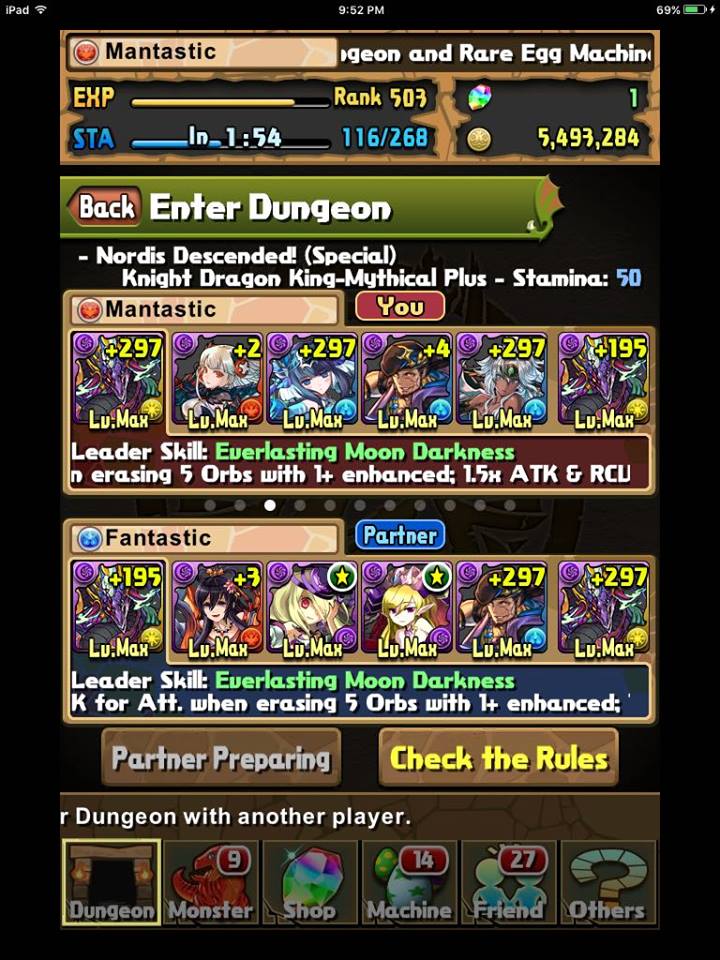 Nordis’s dungeon is favourable for dark teams as the majority of the floors are light and consequently you can deal double damage. Do note that the final floor does a 3 turn pre-emptive bind to all dark monsters; however, my leaders