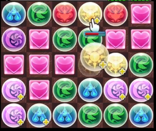 From the above image, the horizontal heart orb match will result in a wood and light combo to occur. The line is relatively simple to set up and will be your most common method of Cascading.