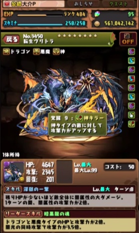 As such, GungHo is trying to make his awoken/reincarnated form more appealing by providing a revamped leader skill and amazing art. In addition, Indra regains his God typing and would allow him to once again be used as a Ra Dragon