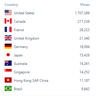 In total, there has been 2,176,231 views from January to December. My most viewed day of all time surprisingly came on October 31, 2018 with 33,383 views due to the 10-Stone Voice Godfest and 100 free Magic Stones.