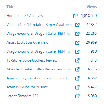 My most viewed post of all time is still the Popular Leaders and Their Full Sub List with 147k+ views but that format is sadly outdated and was also during the higher point of viewer traffic. I have wanted to revive this type of guide and believe I have found modest success through the recent Team Building in 2018 which explains a leader’s strengths and weaknesses and how to approach team building with all the new tools at our disposal. I have been currently working on a more detailed and expanded article following this format which I hope will be ready in early 2019. Generally speaking, if it takes you a minute to read something, it takes over and hour to produce.