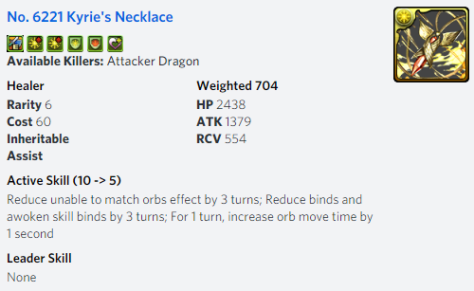can make for a wonderful pairing that results in 3/390/1.5/43.75% while also having 1,000,000 Follow Up Damage and +2 combos when matching 6 or more Fire orbs. This should be enough bulk to stall on most floors and while the 1.5x RCV may feel alarming, healing solutions such as Amaterasu