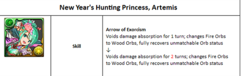 New Year’s Artemis has also received a buff from 1 to 2 turns for Damage Absorption Void which does bring her on par with most other options.