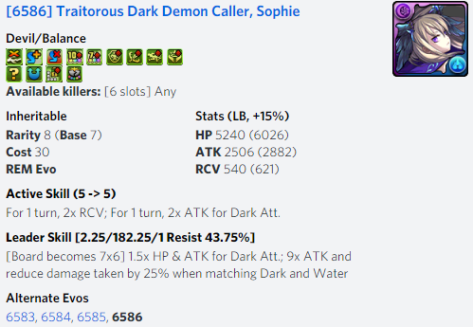 On the flip side, Sophie is not without fault as you are restricted to Devil types along with her only providing 1 colour towards Rainbow activation. Furthermore, her VDP