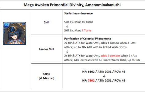 Ameno has received a significant cooldown reduction as they are now a tri colour board changer on a 7 turn cooldown. This is already fast and the 3 turns of 35% Damage Reduction is more icing on the cake.