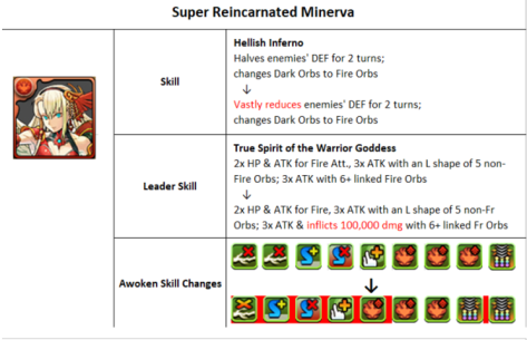 Minerva can now reduce enemies DEF by 85% which has merits if playing through Training Arena 2 while also providing an orb changer.