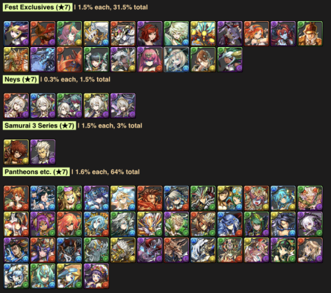As mentioned in the introduction, I always like to lump in the Samurai 3 cards into the “good” pool which grants us a 36% chance of any top prize which is barely above the 1/3 baseline. This in turn make this a lackluster Super Godfest and there should be no true reason to be rolling here and saving your Magic Stones for the next high value event is better.