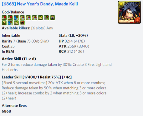 The reason why I wanted another Artemis is because I wanted to run a Wood/Light Team with her Base as the leader and another one as the Helper. Plus, aside from Fujin which I have, I don’t have any full Wood or full Light Monster that can tackle Damage Adsorption and/or deal with unmatchable orb status unless you happen to know one by chance. And also, I’ll take your advice on keeping my trade fodder a little longer since I’ve already had to trade for one Artemis already.