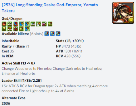 On the other hand, NY Yomi’s Leader Skill boasts large numbers but will suffer from inconsistency due to having no Effective HP without Light and Dark combos along with their active not contributing to orb generation or having a System available. As such, players may find themselves in a bad situation far too often and a lack of consistency is not a healthy thing for a leader.