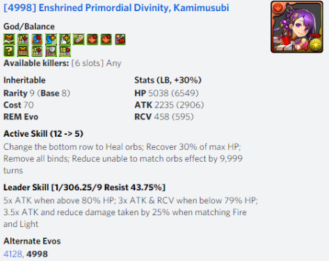 New Year’s Kami has been upgraded and is able to function as a respectable mono Fire sub due to her ability to clear all Binds and Unable to Match Orbs effects while also generating a Row of Fire.