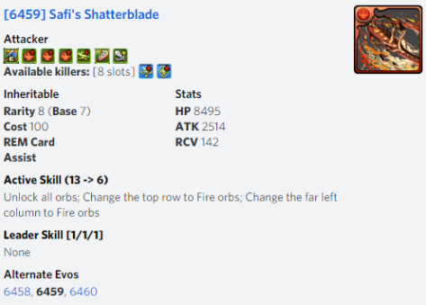 On the other hand, Alatreon can function as a Seina sub as they can remove Locked Orbs through their active along with generating more beneficial orbs should VDP be needed.