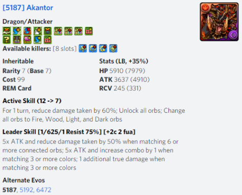 for mono Fire teams tackling WoC2 where the Damage Reduction is needed. Both cards share the same 7 turn cooldown with Akantor having superior personal/Passive damage, HP, and Super Jammer Resist