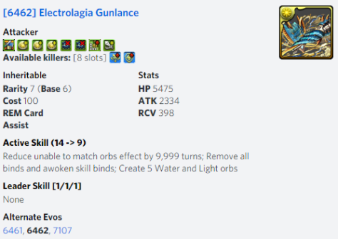Weapon 1 has a fantastic active that can fully clear all Unmatchable orb effects and Binds/Awoken Binds on a fast 8-turn cooldown. This has applications in essentially every dungeon and the inclusion of an L