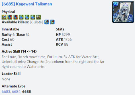 oriented but retains the same 15-15 board changer. As mentioned above, this active skill will be his main appeal and which form you do pursue will come down to what you think you need more: Killers or VDP damage.