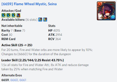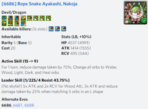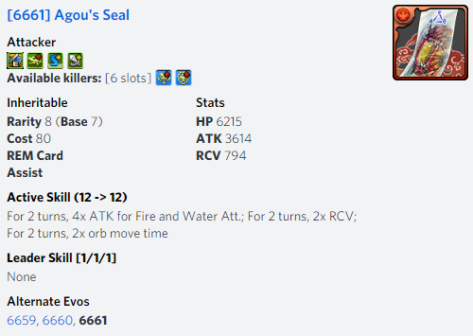 Kukan should be ranked higher IMO – sure, Wood has better options, but come WoC 3, Seina teams (those few that can endure the carnage in that dungeon, that is) will be running his evo over Shiva/GH Lakshmi/other shielding options by virtue of his Attribute combination.