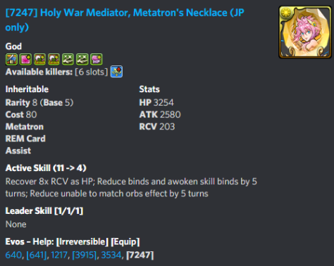 New Metatron (both L and D) evos consistently not putting her back in the meta disappoints me. I still hold a few copies just in case, from back in her peak.