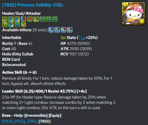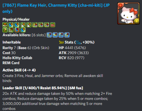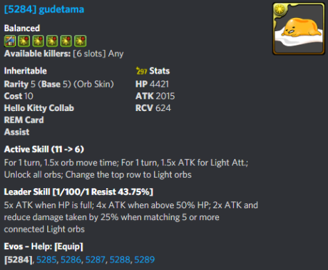 As a whole, this Collab does not offer much if trying to tackle current end game content (SR2+/MD1+) but instead grants players numerous Farming tools that are truly excellent when used in Solo mode. This is because they provide numerous Dungeon Bonus awakenings which increases the drop chance and values dropped/earned at the end of the Dungeon.