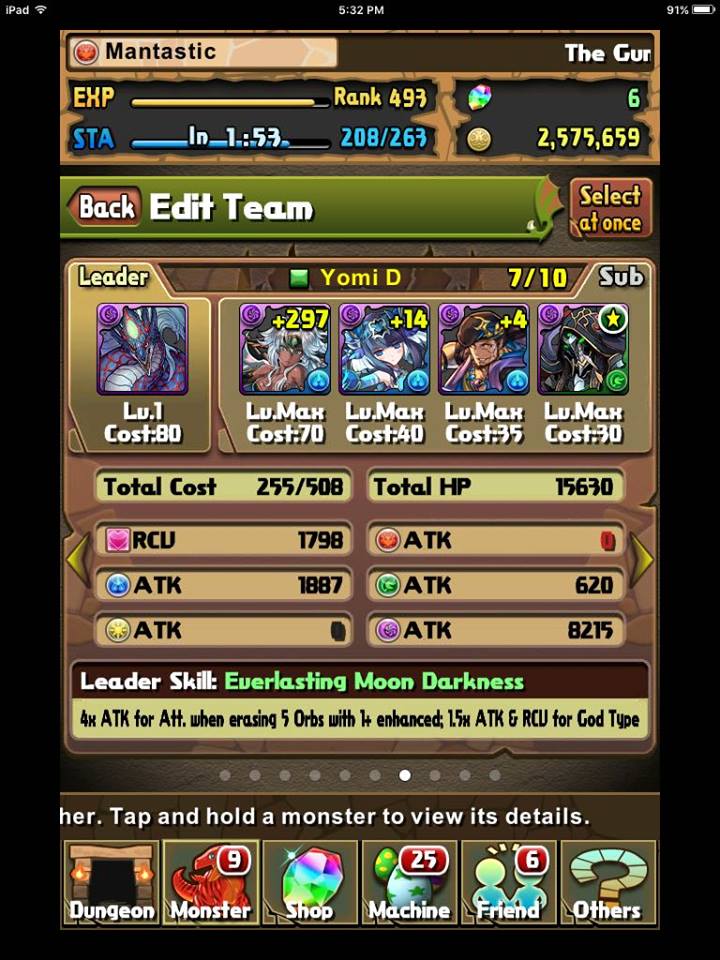 I have almost completely made my mind up what I should do with my first 300k Monster Points as I was lucky with the 4x GFE rates this past godfest. I am actually very excited and have been researching both Yomi Dragon and Ra Dragon to try and determine who would be the best fit for my box and playstyle. I am only 1 skill up away from hypermaxing Elia and completing my Awoken Sakuya team pictured below. It is rare to be able to complete a team in PAD and the satisfaction I will have with the final skill up will be a glorious thing. As such, I wish to expand and branch out to a different team as will most likely not have any roster changes any time soon.
