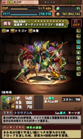 Odin Dragon has historically been somewhat of a joke in the PAD community upon his initial release due to how underwhelming he was. Granted he does make for essentially the strongest bind clear for wood teams, the 300,000 Monster Point price tag was hard to swallow and now with Reincarnated evolutions catching up in base stats, there was no real need to purchase him.